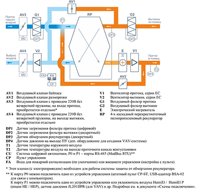 - - Система защиты от замерзания и система разморозки рекуператора.
