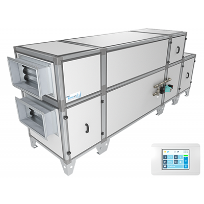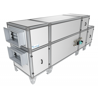 - Приточно-вытяжная установка напольного типа с противоточным пластинчатым рекуператором и системой защиты от замерзания.